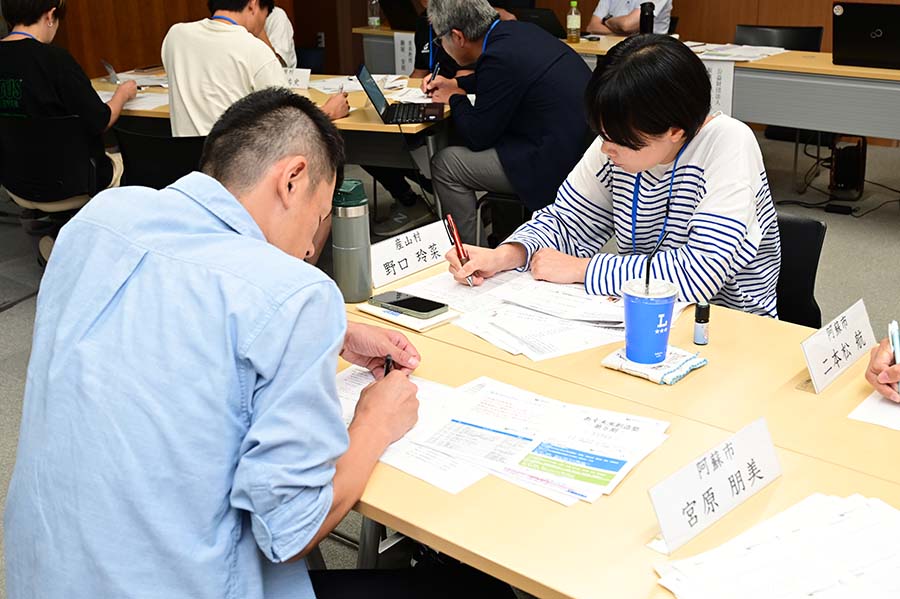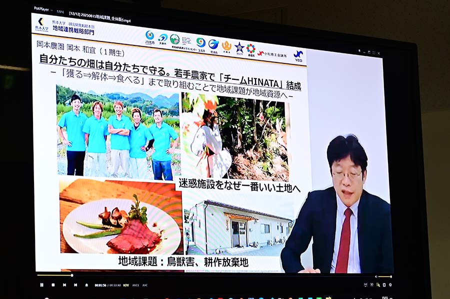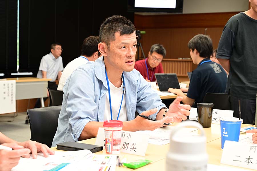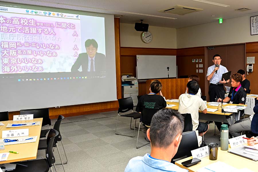 講義の核となるのは、地域課題をビジネスで解決する「ローカルイノベーター」の育成です。「阿蘇未来創造塾」等の活動を通じ、大きな事業よりも「スモールプロジェクト」を積み重ね、若者が「帰ってきたい」と思える環境を共創する重要性を説いています。受講生には、提示された図解を基に自地域の現状を深く理解し、主体的な対話を通じて解決策を探ることが求められています。